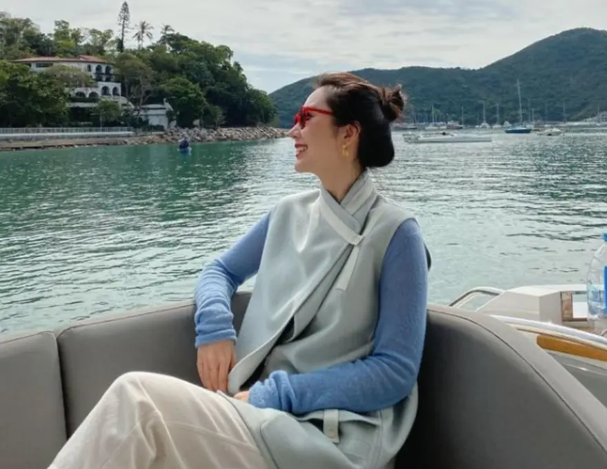 董花花晒照,穿白裙罕秀香肩美腿,一脸福相被赞越
