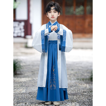 素新中式男孩国风汉元演出服古装汉家小童儿童马面裙男童汉服唐装