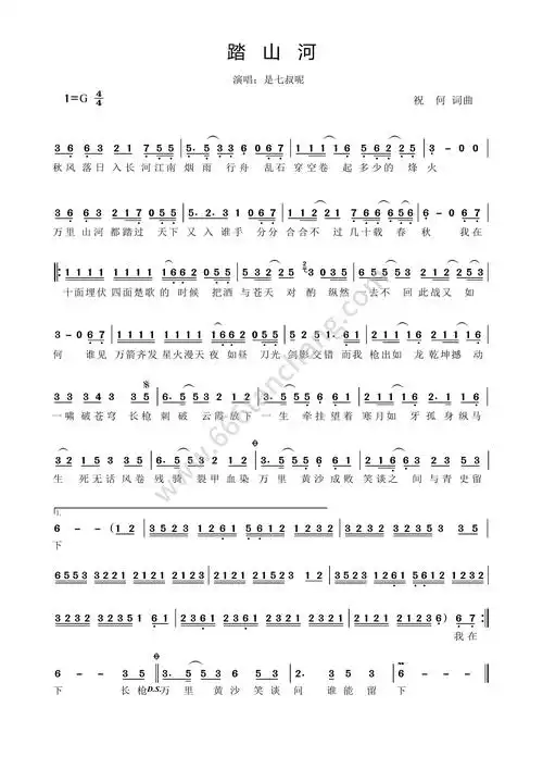 歌曲简谱是七叔呢踏山河免费高清歌谱简谱流行弹唱网