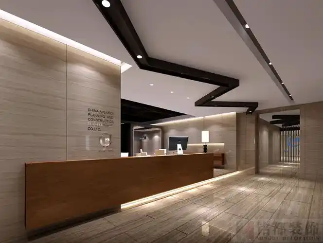 公司简约风装修前台吊顶设计图2/14