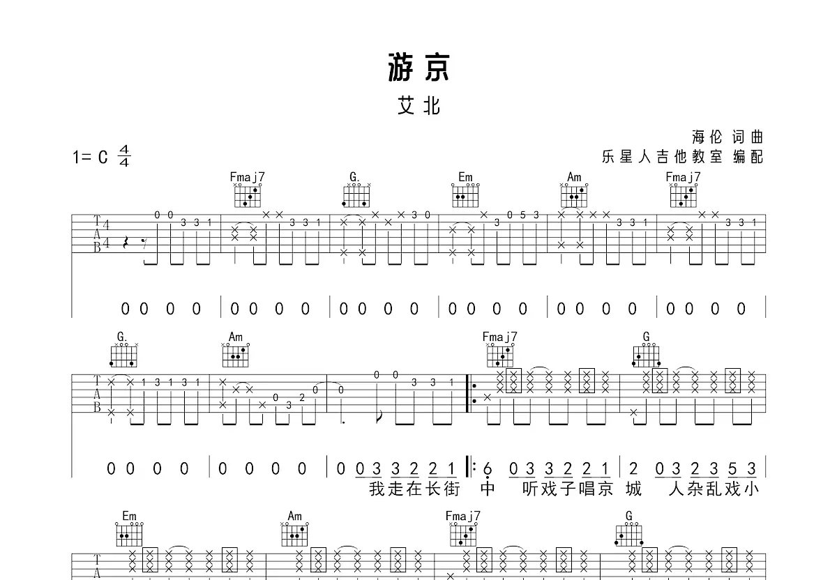 游京吉他谱_艾北c调弹唱72%原版_乐星人up - 吉他世界
