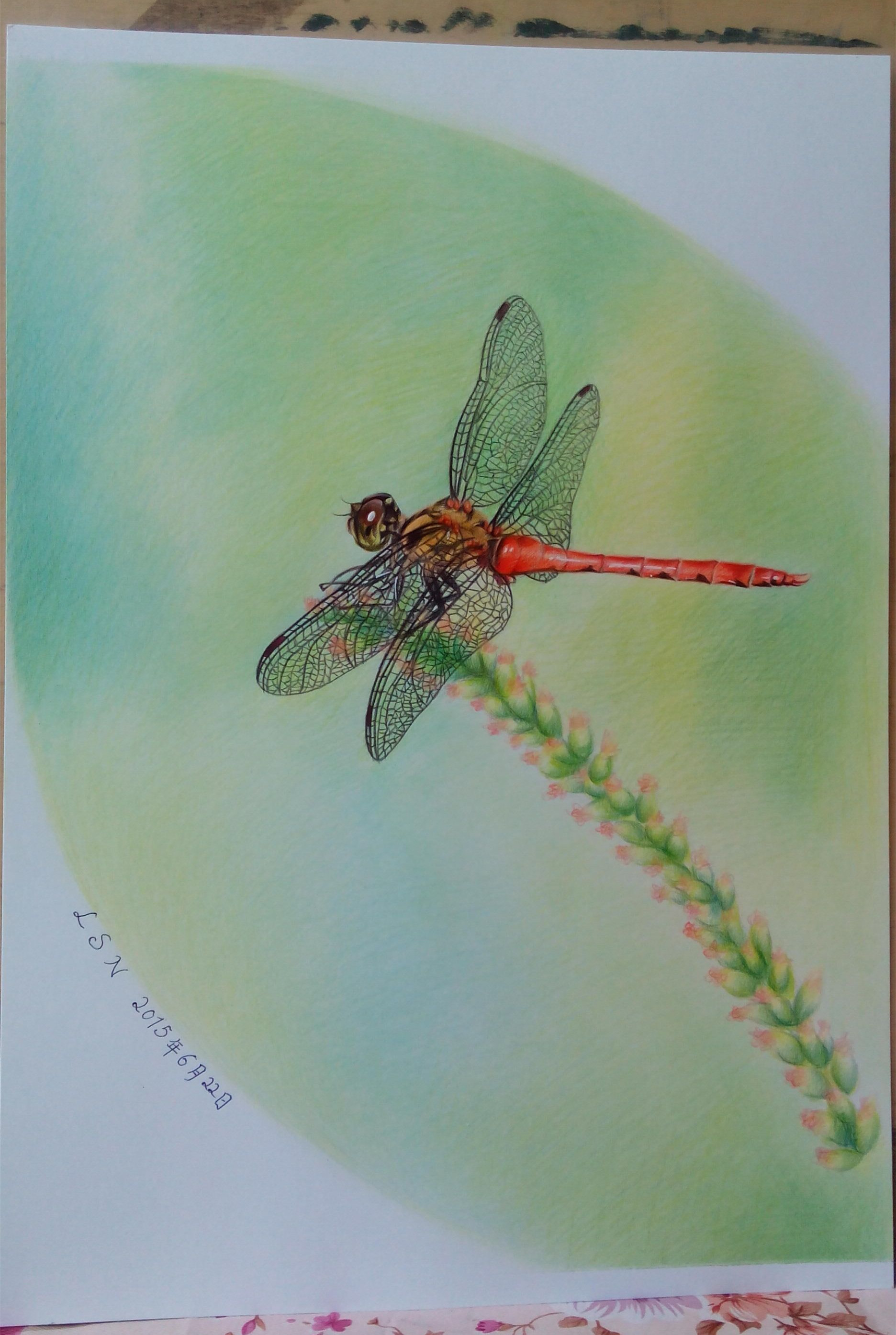珠光水彩画蜻蜓!