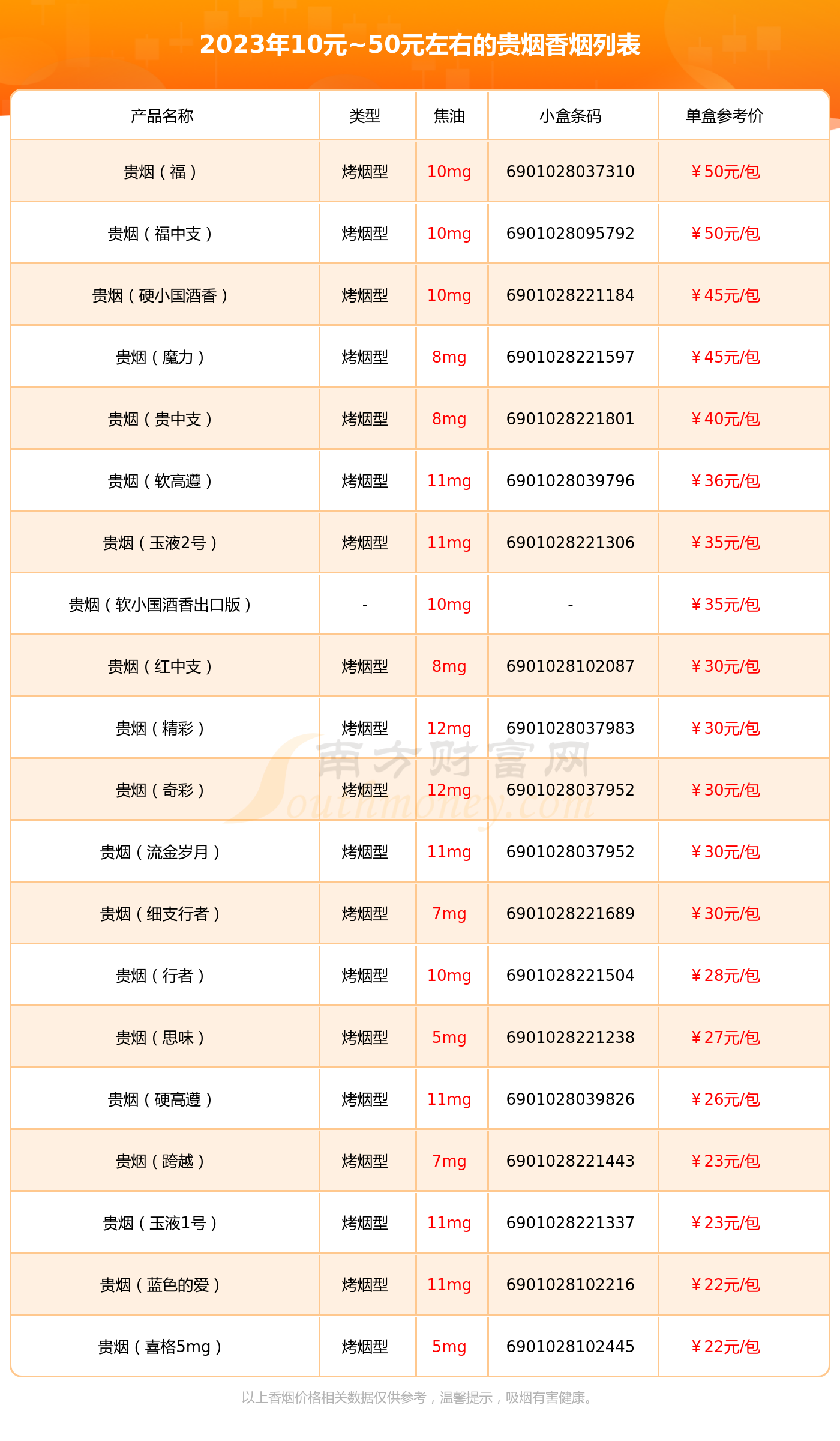 10元50元左右的贵烟香烟查询一览