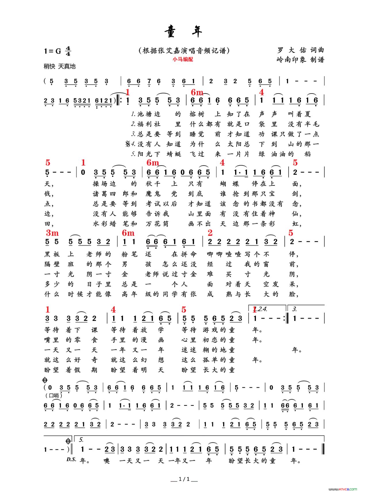 童年_简谱_搜谱网