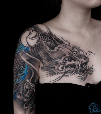 美女的过肩龙纹身图案
