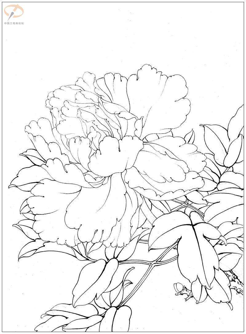 美术教学示范作品《白描牡丹》,跟吴星老师一起画工笔花鸟