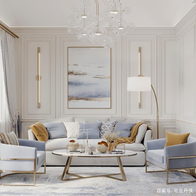 雾霾蓝 姜黄色,法式轻奢风小户型装修设计