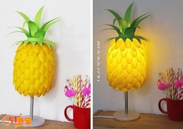 废物利用做菠萝台灯罩教程 - 废物利用手工diy小制作 - 51费宝网