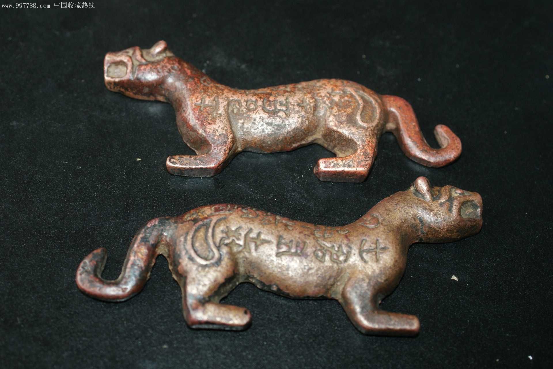 铜虎符一对 长:15.5cm 纯铜,厚重,虎身刻文字,合二为一,寓意忠诚