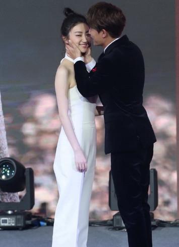 在台上,成龙揽殷桃,景甜亲密合影.