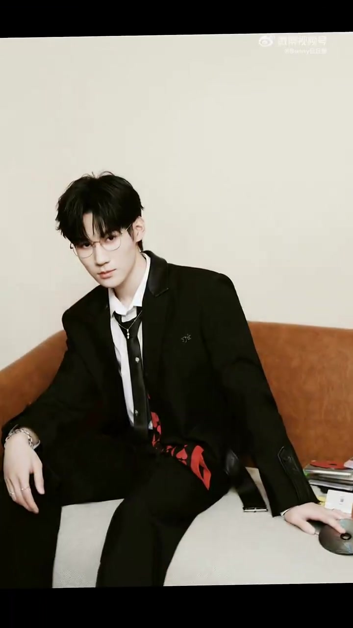 张真源黑色西装金丝眼镜造型 今天又是被张哥帅到的一天,黑色西装[gf]