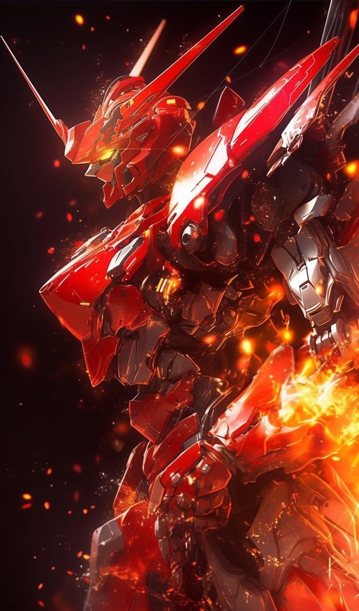 ai生成的一组机动战士高达插画作品,展现了高达机体之间战斗的场景,有