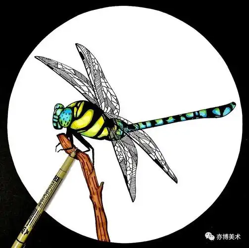 【线描马克笔创意手绘】夏日里的飞行家——蜻蜓 - 元艺考