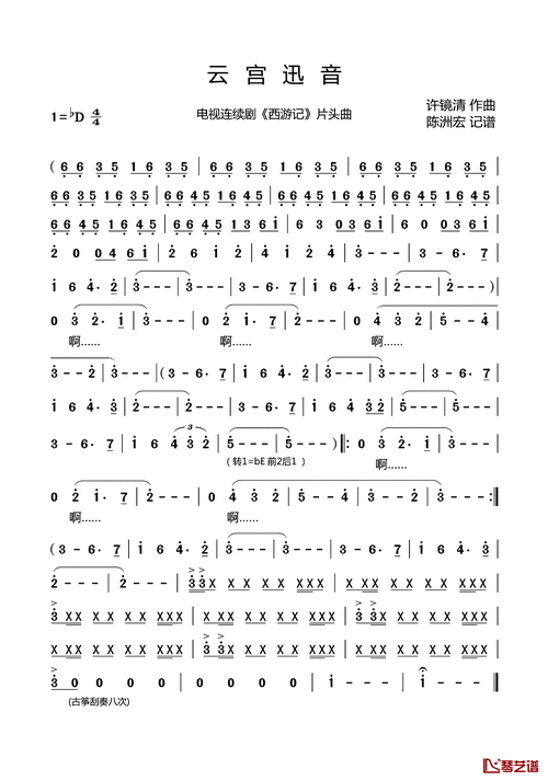 云宫迅音简谱歌词西游记插曲陈洲宏记谱