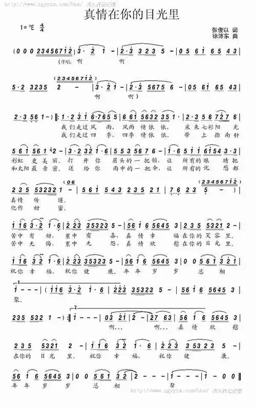 真情在你的目光里_歌谱简谱_哆来咪123曲谱网
