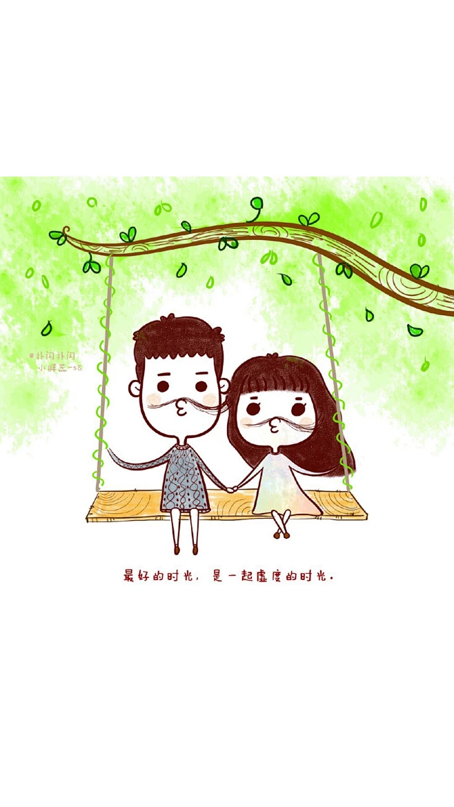 暖心手绘插画图片,陪伴