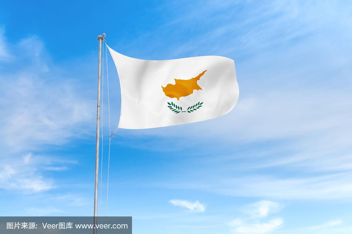 塞浦路斯国旗在蓝天背景