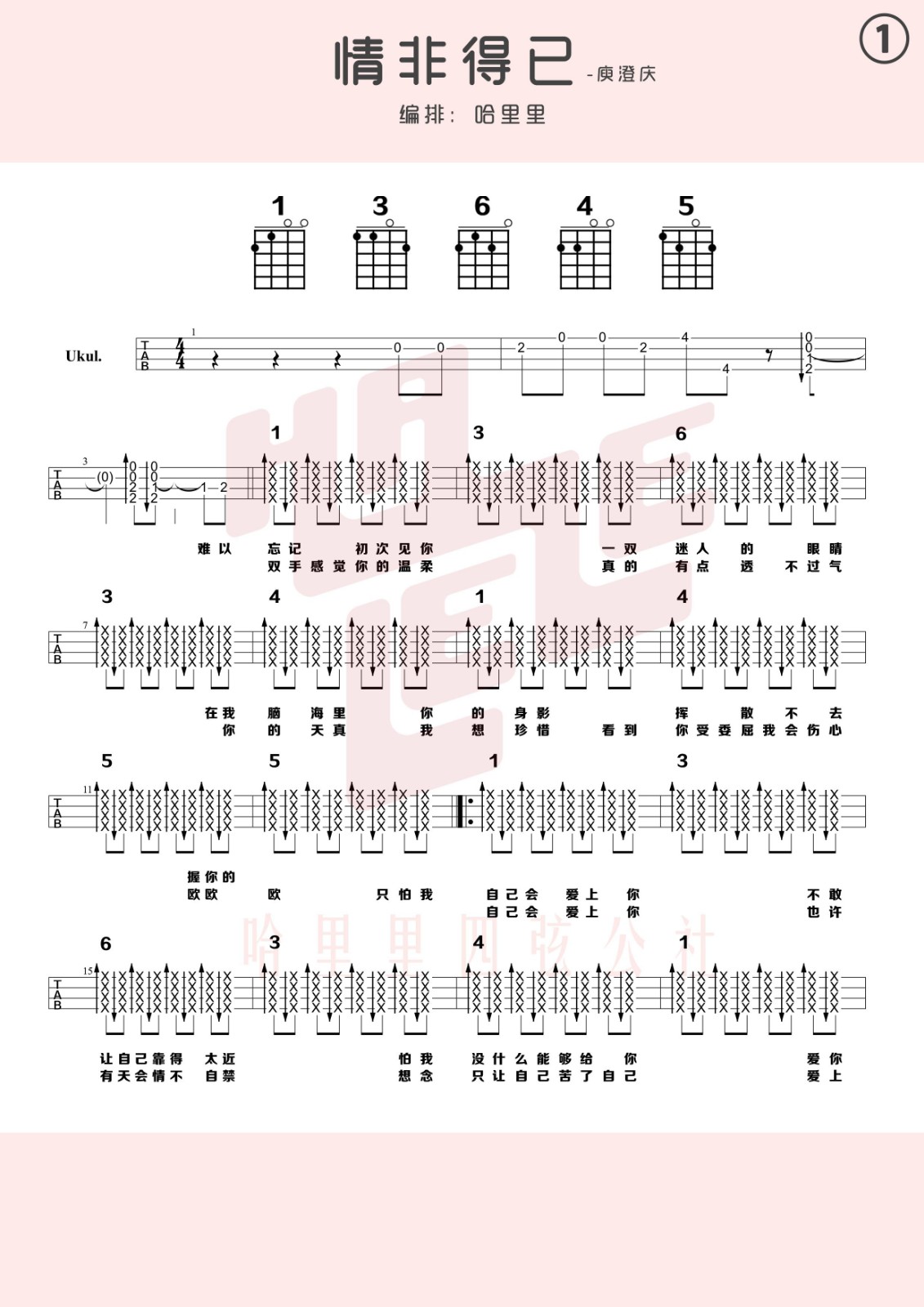 情非得已尤克里里谱弹唱版g调扫弦版哈里里编配庾澄庆