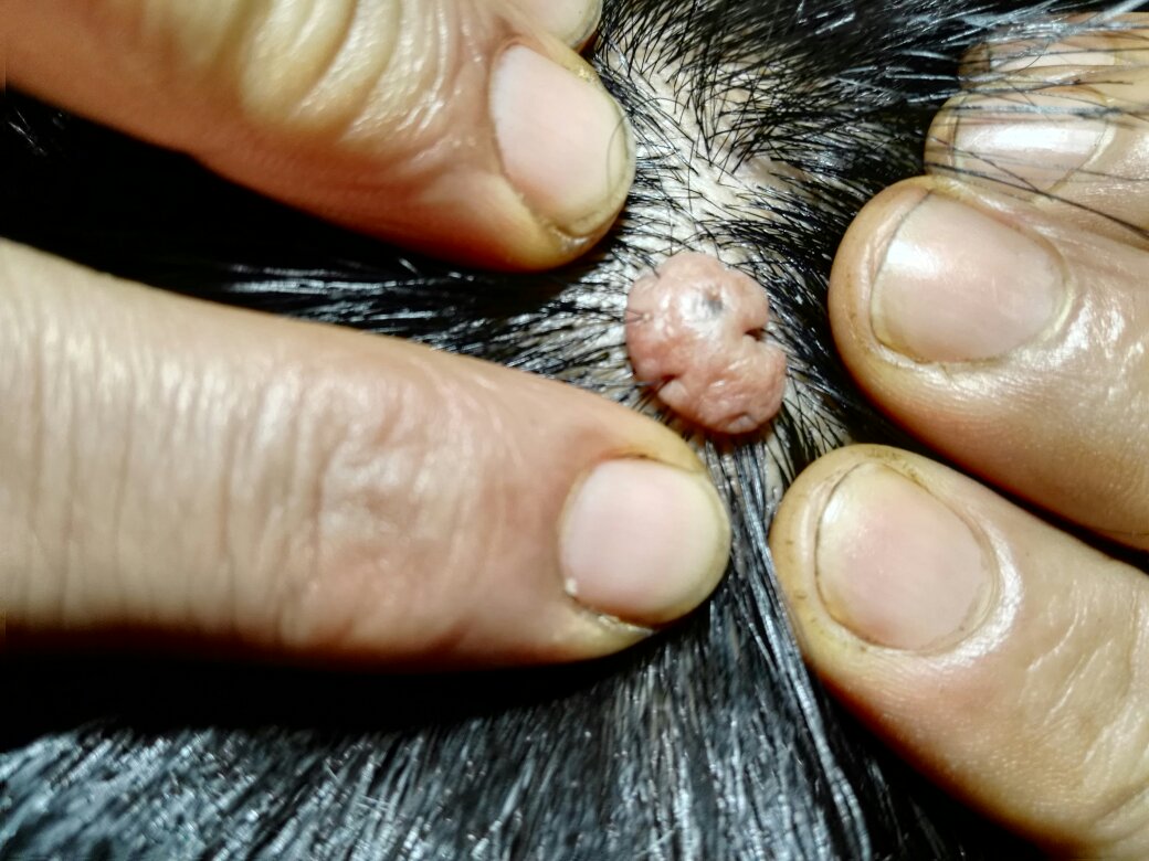 头皮上长了个肉球,好几年了,之前很小的,这段时间突然大了