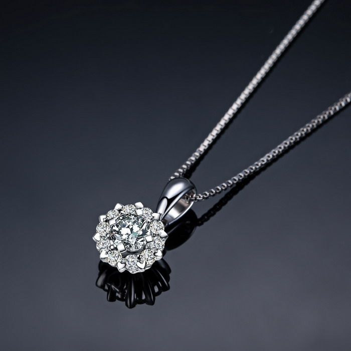 1克拉白金钻石吊坠女铂金30分钻石项链18k金群镶真钻砖石挂坠正品
