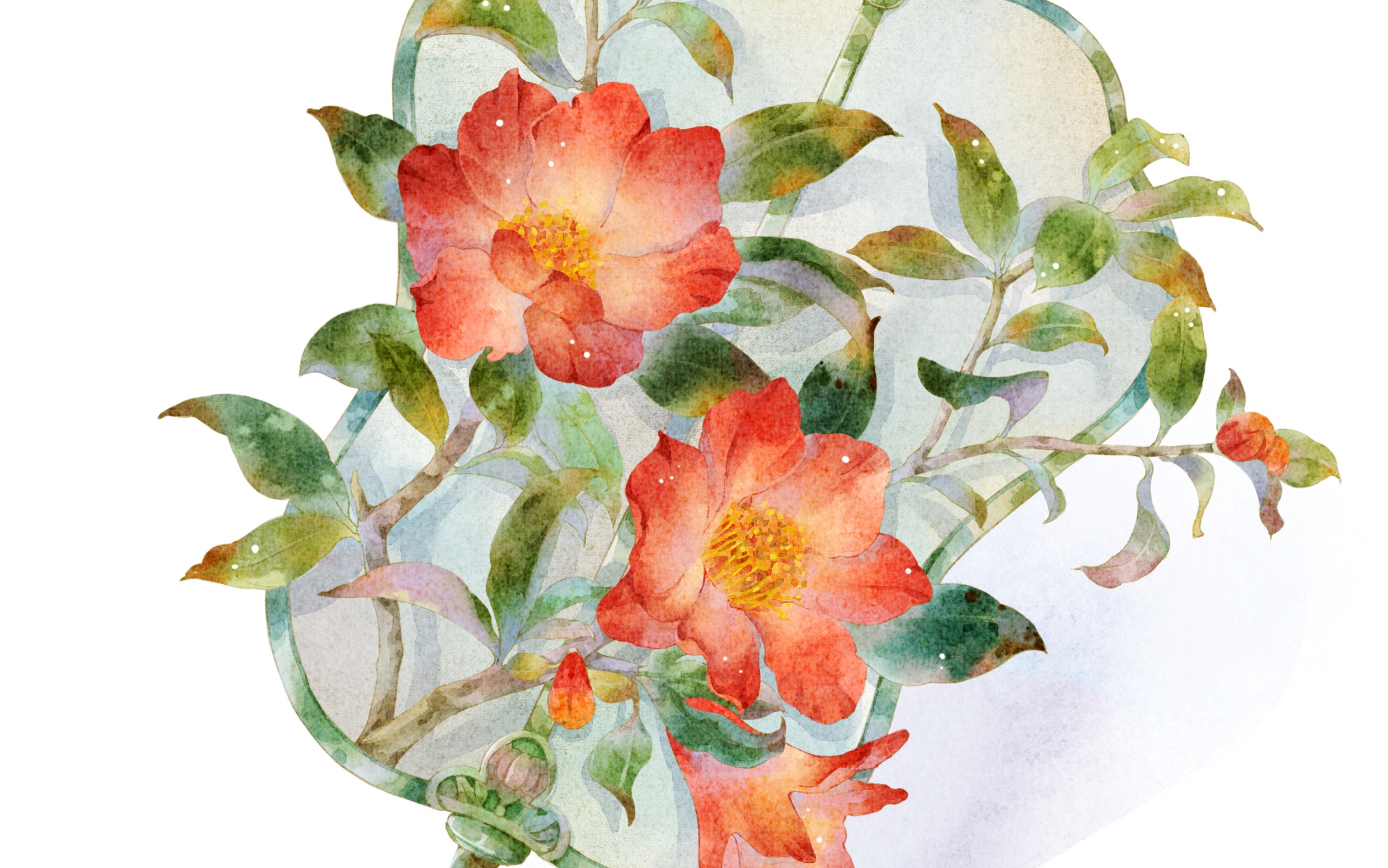 【ipad水彩】水彩花卉扇面之石榴花扇