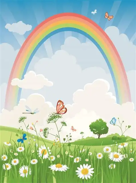 卡通天空彩虹花草背景图
