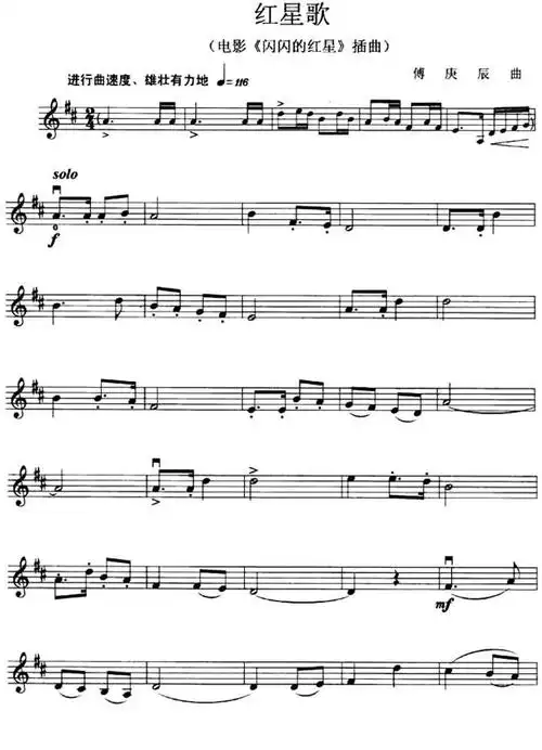 红星歌钢琴谱_傅庚辰_闪闪的红星主题曲