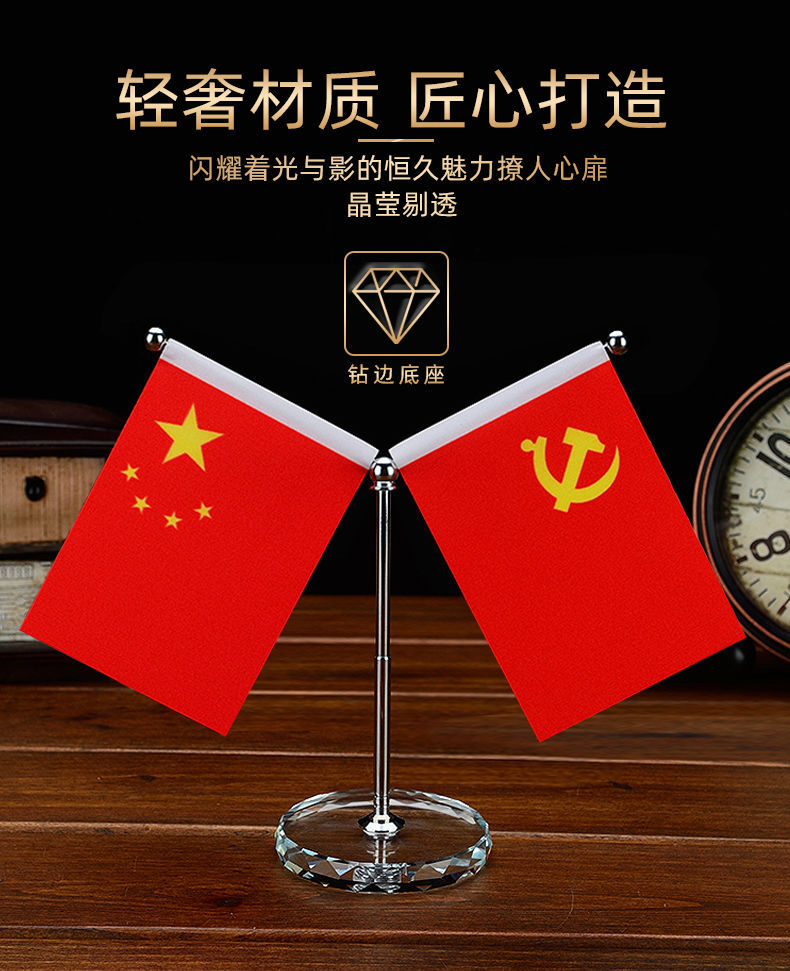 车载党旗车内小红旗摆件五星红旗办公桌旗车内饰品摆件装饰品 摆件