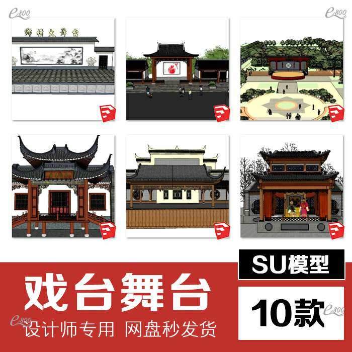 新农村乡村大舞台中式乡村仿古戏台戏曲文化舞台表演场地su模型