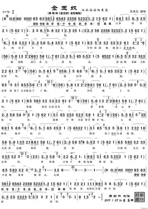 是一首经典的黄梅戏曲谱曲目,江水滔滔向东流(黄梅戏唱段)黄梅戏曲谱