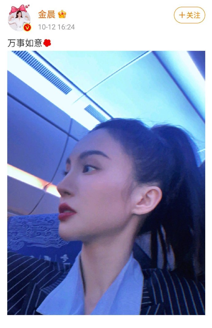 金晨高马尾侧颜照##金晨晒高马尾侧颜照