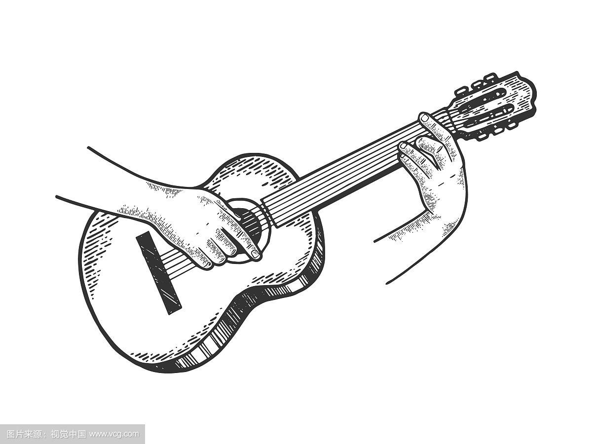 手弹吉他素描雕刻