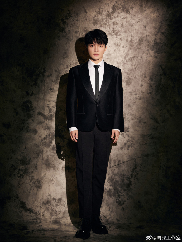 周深身着 st. john 黑色西装外套_剪裁_格调_光影