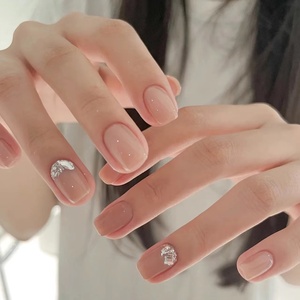 豆沙晕染符号跳色成品美甲可拆卸假指甲成品穿戴式短款方头甲片