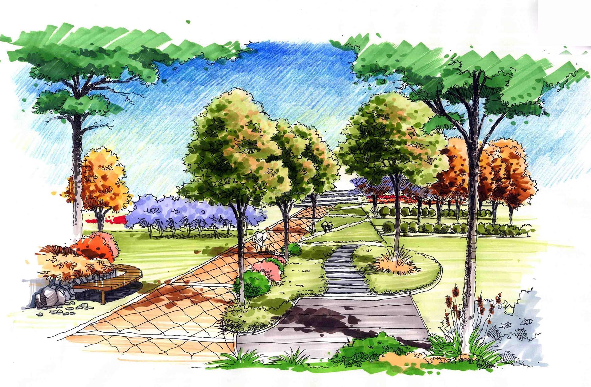 环艺手绘|公园景观手绘效果图 公园74景观手绘优秀15效果图