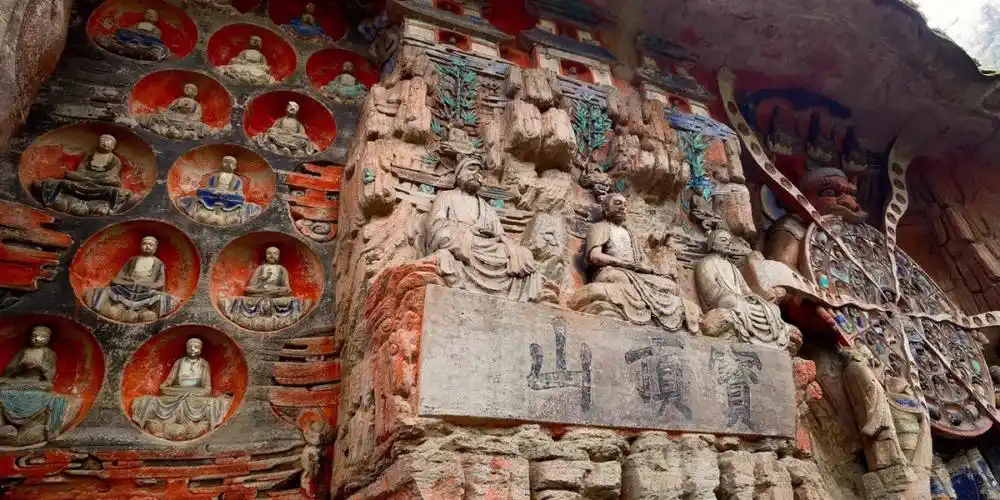 位于大足石刻的圆觉洞,离千手观音像不远,走过去百米有余.