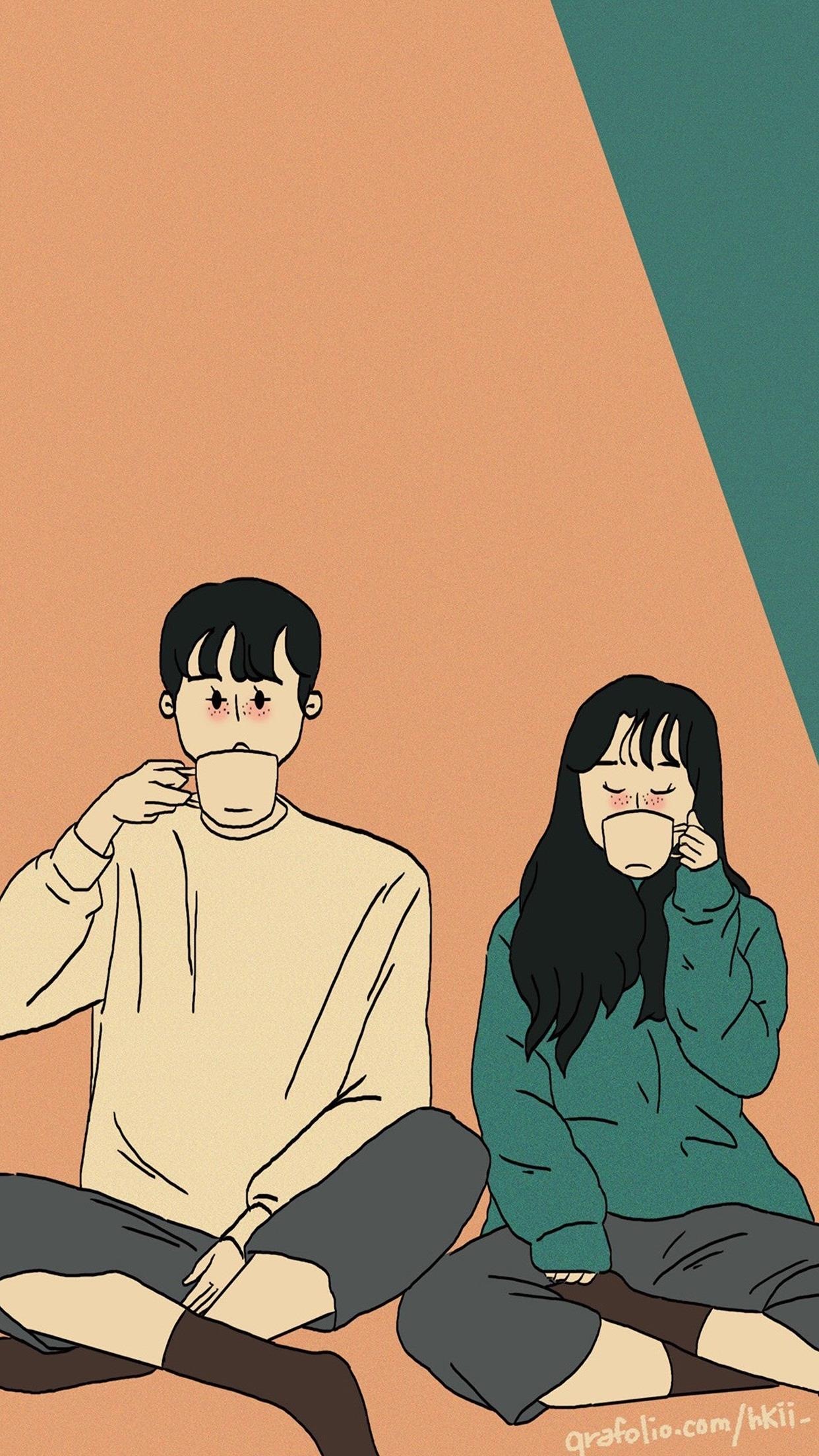 甜蜜小情侣插画美图手机壁纸