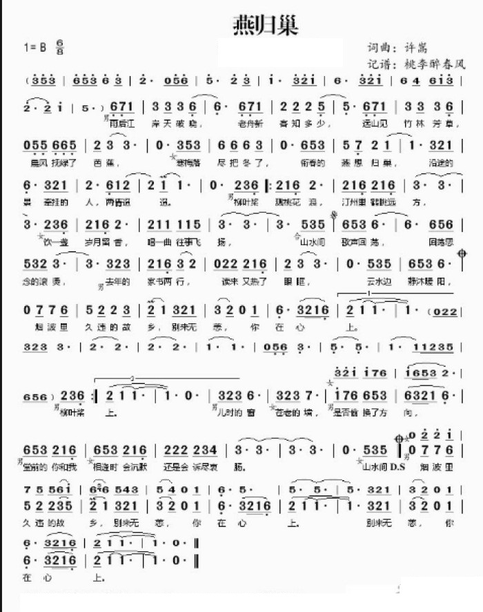 燕归巢吉他谱_许嵩_g调弹唱吉他谱 - 吉他世界