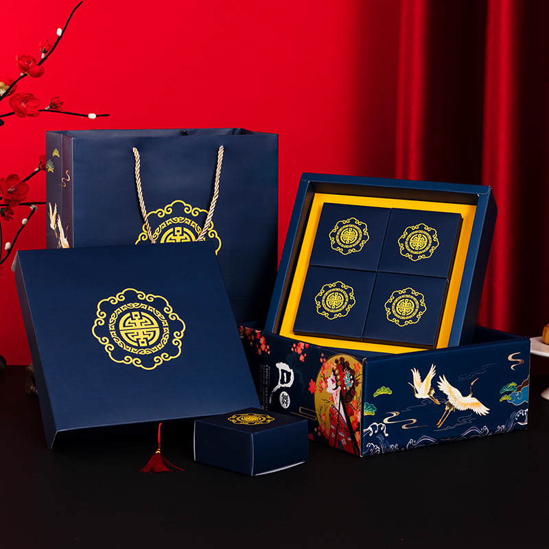 高档中秋包装月饼礼盒剪纸彩印包装礼品月饼盒创意设计插画礼盒