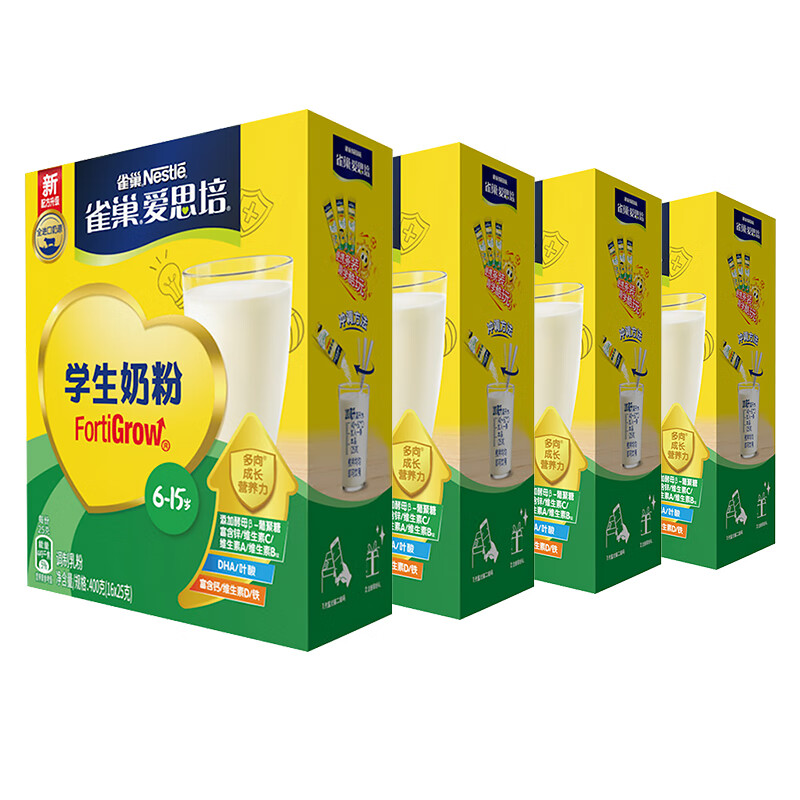 雀巢儿童奶粉3-6岁学生幼儿园成长营养早餐牛奶粉400g*2盒条装