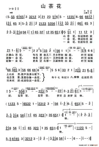 山茶花简谱歌词刘紫玲演唱岭南印象制谱