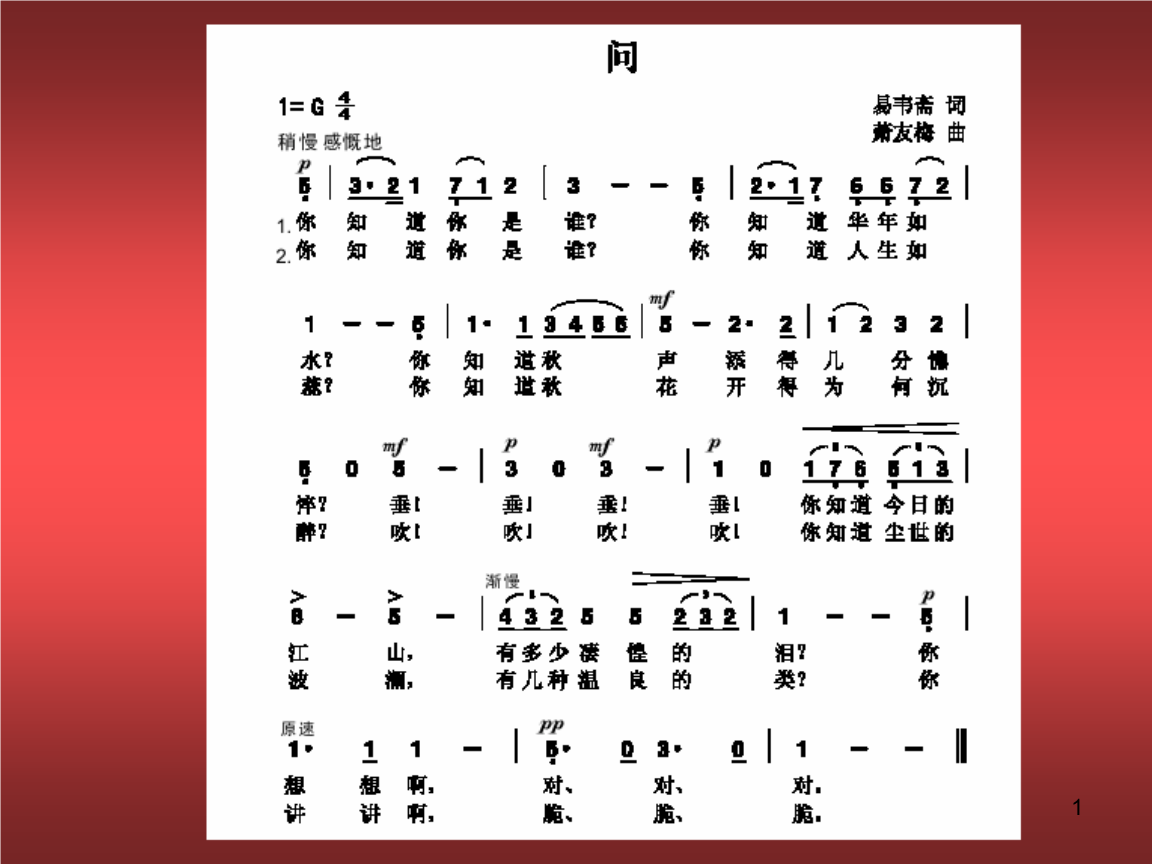 问,萧友梅【声乐伴奏谱】简谱 - 曲谱歌词网