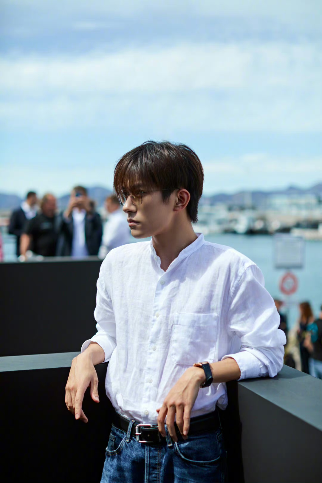 易烊千玺戛纳行随拍图集,白衬衫,牛仔裤简单造型亮相,海岸边的轻松