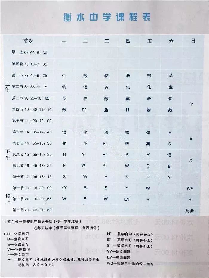 衡水中学 如此细致入微的课程表!