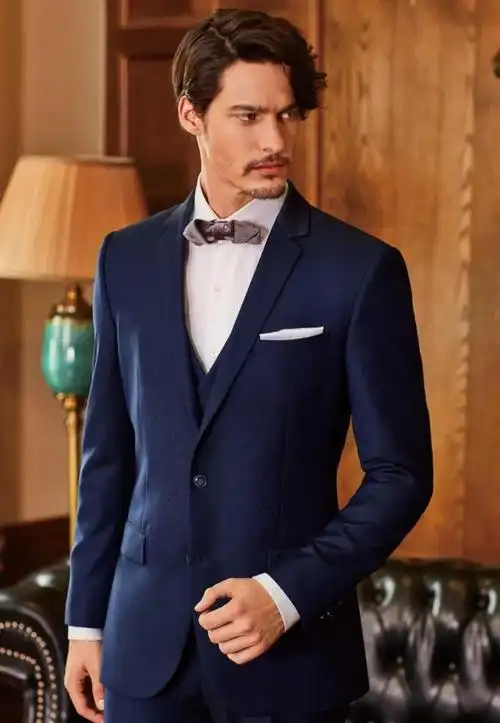 高档男士平驳领商务休闲西装三件套