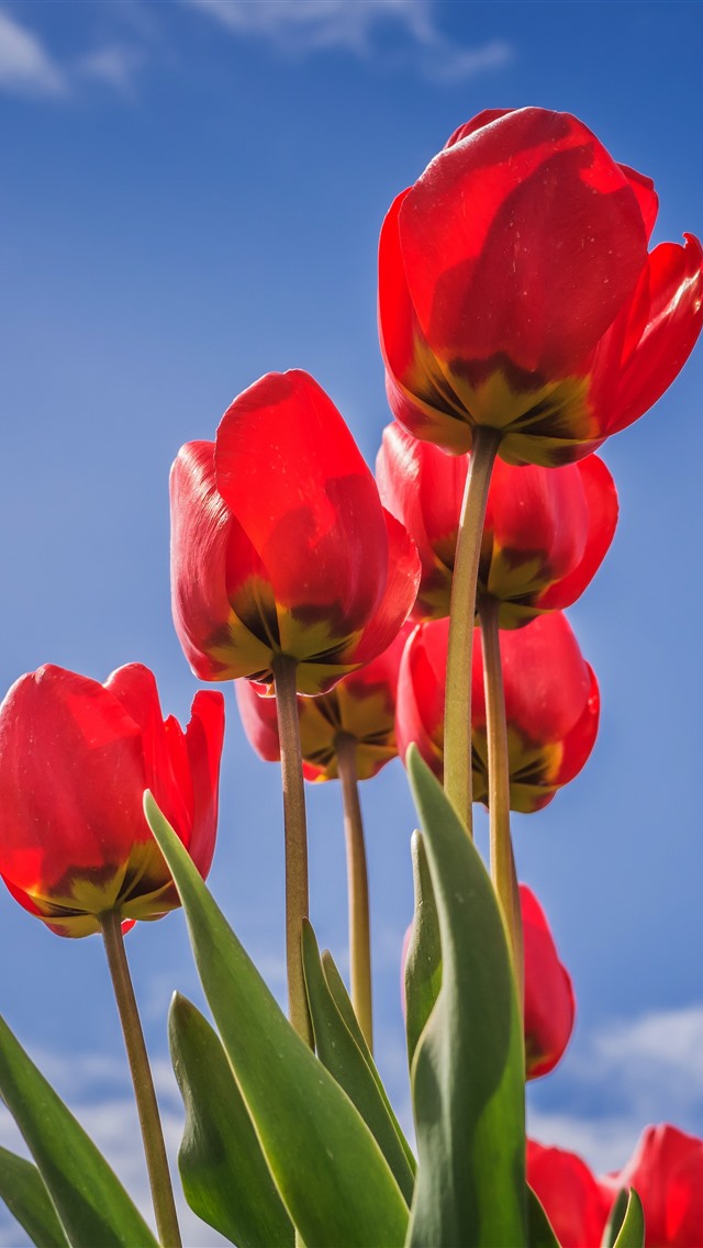红色郁金香,蓝天 5k