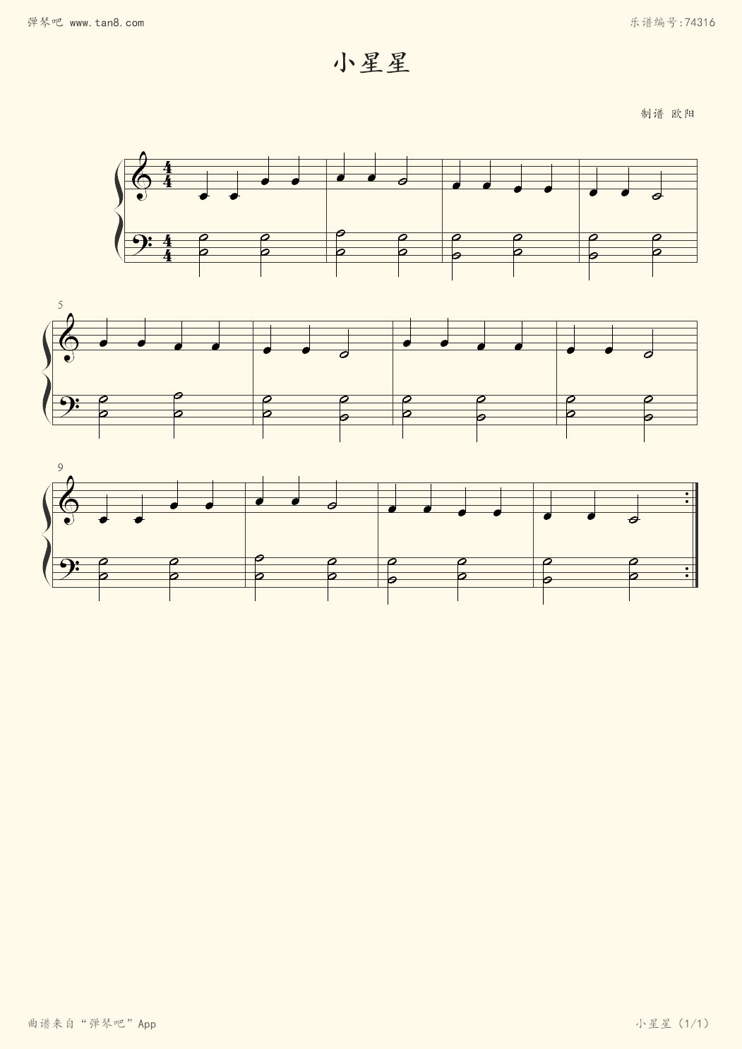 《小星星,钢琴谱》超简单双手弹奏,莫扎特(五线谱 钢琴曲 指法)-弹吧