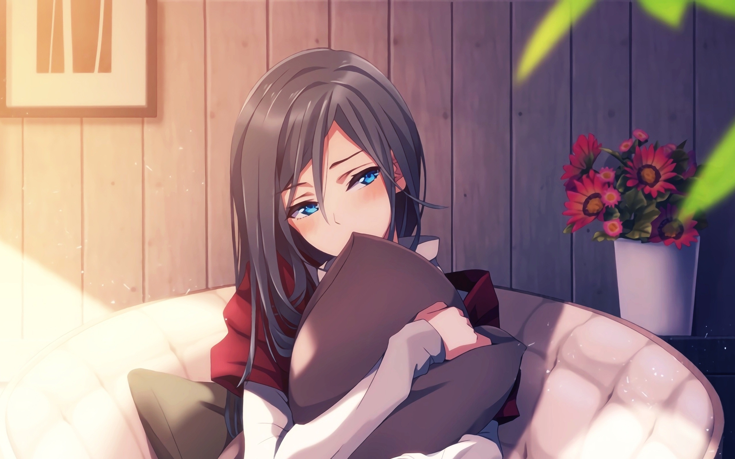 床上可爱女孩 长头发 鲜花 4k动漫壁纸3840x2160_4k动漫图片高清壁纸