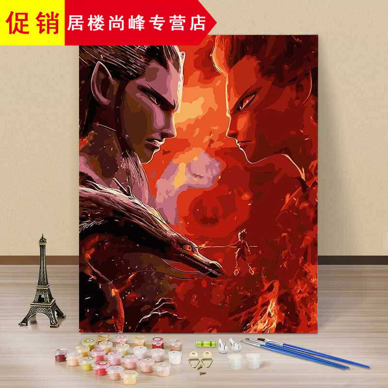 敖丙画敖丙填色客厅手工手绘油画半面妆数码人物动漫哪吒数字diy