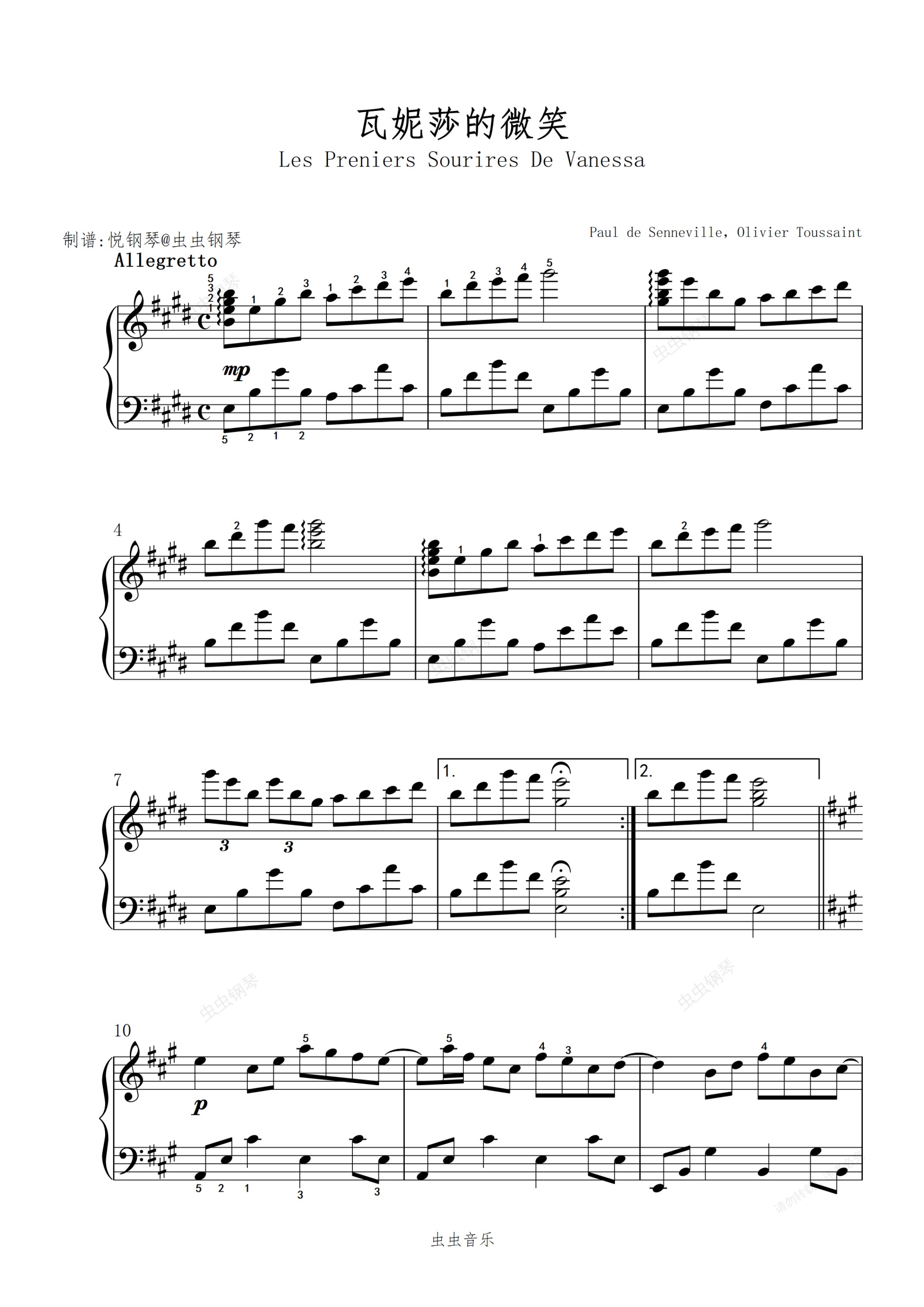 瓦妮莎的微笑钢琴曲谱,于斯课堂精心出品